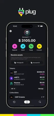Plug is a wallet app (and extension for browsers!). Your identity and wallet to navigate the Internet Computer. Allowing you to hold, send, and manage ICP, Cycles with just one Principal ID!