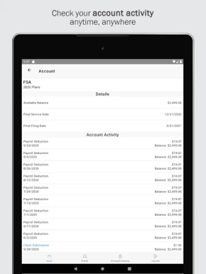 Save time and hassles while making the most of your HSA, HRA, and FSA health benefit accounts by quickly checking your balances and details. Our secure app makes managing your health benefits easy through real-time access and intuitive navigation to all your important account information on the go! Powerful features of the app include: