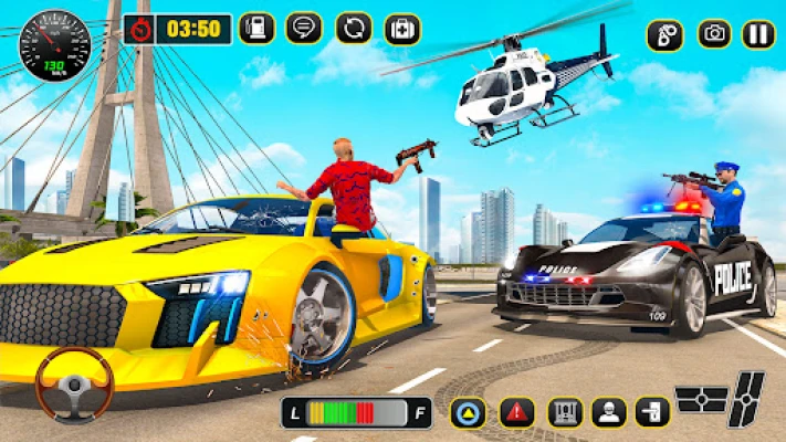 This helicopter thief chase, flying copter game aims to rescue the city people from city mafia gangster and chase gangster and shoot them in police crime shooting games. Police cop duty officers have thirlling missions to chase and shoot in police helicopter chase games. Engage in thrilling police helicopter chase missions as part of your police cop duty. This game is designed for those who enjoy killing criminals in the mega city, combining the excitement of police car driving games. Take the lead as a skilled and well-performed driver in the shooting games of the helicopter rescue simulator. You are the only hope for the city people, saving them from the gangster mafia in this police helicopter chase: police crime shooting game. Fulfill your duty as a great police officer, protecting the city and its people in this thrilling police helicopter game.