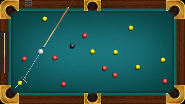 In Blackball pool there are 15 colored balls (7 red, 7 yellow and 1 black). The goal is to pocket all balls of your color group and then the black ball. Player who pots the black too early loses the game. In Pyramid billiards there are 15 white balls and one red. The goal is to pocket any 8 balls before your opponent. You can play alone, versus computer or with 2 players on one device (hotseat).