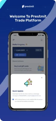Prestmit is a user-centric platform designed for users to buy or sell Gift Cards in Naira, Cedis, Mobile Money, and other currencies while earning gift points on every transaction.