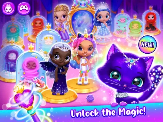 Grab your magical wand and watch as a unique glass dome opens to reveal the most precious princess waiting for you! Delight your sweet ladies with tasty treats, entertain them with playful games, and explore exciting activities in the magnificent castle under your loving care.