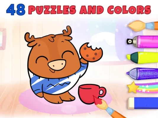 - 4 different types of games: Puzzles, Stickers, Free drawing and Coloring