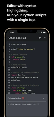 Whether you are a beginner or a professional, this app will help you improve your Python programming skills. Use this coding editor to become a Pythonista and better developer.