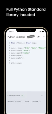 You can run, execute, and evaluate Python code, scripts, and programs from this app.