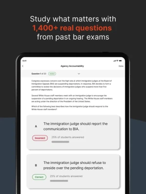 Quimbee is an all-in-one platform that provides the materials and guidance law students and legal professionals need to succeed. More than 625,000 students have trusted our expert-written case briefs, engaging video lessons, essay practice exams, and multiple-choice quizzes to survive cold calls and ace their exams. Bar examinees have access to real, licensed questions from past bar exams and personalized essay feedback from attorney graders that help them pass the bar on their first try. Attorneys are able to easily satisfy their CLE requirements and keep current with recent legal developments using our on-demand CLE courses. From your first day of law school until your final day of practice, Quimbee will be by your side.