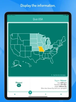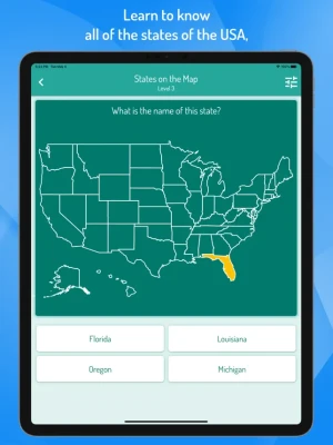 In this geographic game, you will get to know the names, abbreviations, regions and capitals of all the states of the USA as well as know how to identify them on the map of the United States. The quiz will also teach you how to find the largest U.S. cities on the map and identify their states and regions.