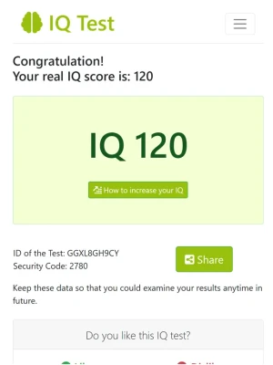Take this IQ test and find out the real value of your IQ. The test determines the coefficient of your IQ, its completion must be done within 30 minutes. The test contains 30 questions, each of which has a single answer. You will find out your IQ value immediately after completing the test, if you have already done the test and want to check the result, click on the menu button to display the results.