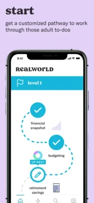 Everything you need to conquer adulthood, all in one place! Realworld focuses on bite size actions to take across personal finance, health & wellness, and career growth.With just a few mins here & there, you’ll see the benefits add up—accomplish a ton without getting overwhelmed.