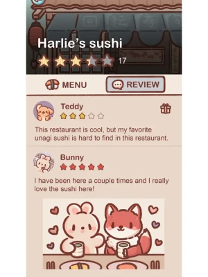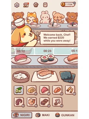 Step into the world of 'Revolving Sushi', an adorable mobile game that lets your culinary skills shine!With the help of three cute doggies, you'll take on the roles of both chef and manager in a unique revolving sushi restaurant. Get ready to craft delicious sushi, serve customer orders, restock ingredients, unlock new menus, and decorate your sushi spot. Plus, you'll gather valuable customer reviews. Join the game and see your small business blossom into a paw-some sushi destination!