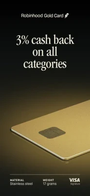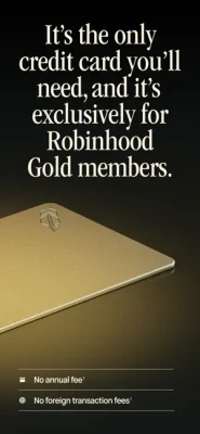 Robinhood Gold Card is offered by Robinhood Credit, Inc., and is issued by Coastal Community Bank, Member FDIC, pursuant to a license from Visa U.S.A. Inc. Robinhood Credit, Inc. (RCT), is a financial technology company, not a bank. Robinhood Financial LLC (member SIPC), is a registered broker dealer. Robinhood Securities, LLC (member SIPC), is a registered broker dealer and provides brokerage clearing services. All are subsidiaries of Robinhood Markets, Inc. (‘Robinhood’).
