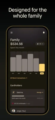 - Effortlessly track family spending, set spending limits, and lock lost cards instantly