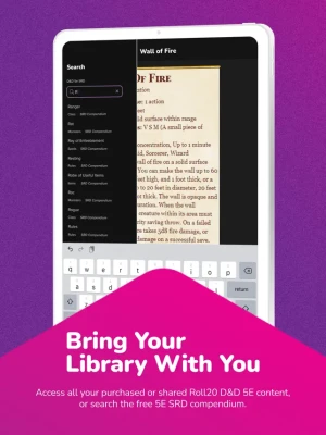 Access all your D&D 5E compendiums to find the rules and descriptions you need for your character sheet.