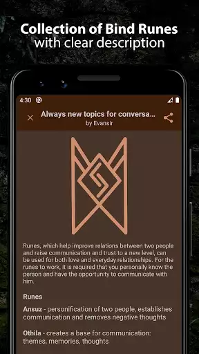 The app is designed to help beginners learn ancient Norse magic. It will open a door for understanding people of those times because magic was a part of their life. Vikings carved symbols on their ships and draw them on their bodies. They believed that this would protect them from the storm at sea and protect them from the enemy's ax.