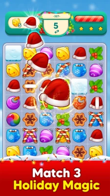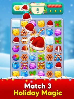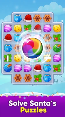 Welcome to the most wonderful time of the year! Match 3 time! A festive holiday Christmas puzzle with more than 4500 levels of match 3 fun! Santa has a lot of work to do and he needs your help. Match ornaments, cookies, candy, holly berries, jingle bells, Santa's hat, and yummy hot cocoa in this game. Help gather the toys and clear the snow for a winter wonderland.