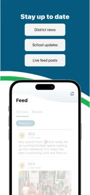 DISTRICT UPDATES In the Live Feed is where you'll find updates from the administration about what's going on in the district right now. Whether that's celebrating a student's success, or reminding you about an upcoming deadline.