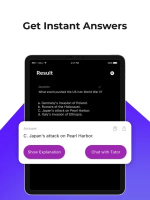 Solve any problem with a snap! Our innovative app lets you snap a picture of any question, from tricky puzzles to tough quizzes, and get the correct answer instantly. But that's not all – our app also provides detailed explanations for each answer, so you can fully understand the solution. We offer a diverse library of resources, personalized learning paths, problem-solving tools, and 24/7 tutor support. With our cutting-edge AI technology, you'll never struggle with a problem again.