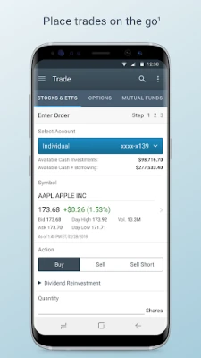 Buy and sell stocks, ETFs, mutual funds, options (1), and more right from your phone (2).