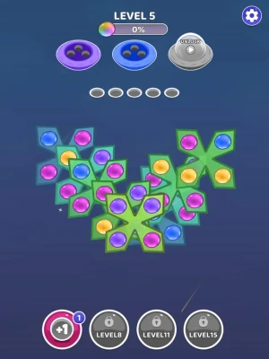 Core Gameplay:Embark on a cosmic journey across alien planets! Solve dynamic stacking puzzles by sorting colorful bolts into matching containers. Tap the topmost bolt on a panel to drop it into its color-matched box. Once a box is full, a fresh one appears, ramping up the challenge! Clear all bolts from a panel to watch it crumble away, unveiling the next layer of interstellar puzzles. Master the chaos to conquer each level!