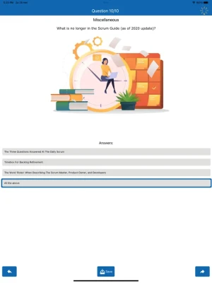 Welcome to the Scrum Practice Test Demo App. This app contains 10 Scrum questions, along with explanation of the answer.