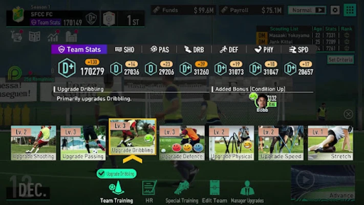 •Build training facilities, world-class stadiums, and develop your team to be the best.