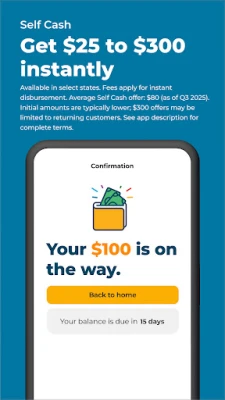 †Self Cash is offered in the Self app only, bank account connection via Plaid and associated debit card required, not offered in all states. Fees apply for expedited disbursement. Cash advance amounts vary based on eligibility and may change periodically; no guarantee of offer. Average offer $60, as of Q2 2025.