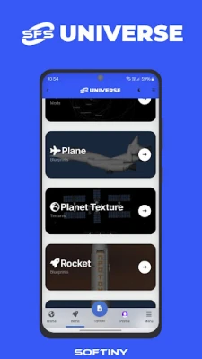 Welcome to SFS UNIVERSE, the app to explore and customize your experience in Spaceflight Simulator! Formerly known as SFS PLUS, we now offer a bigger, better platform with more options for SFS fans. Find blueprints, mods, and textures created by players around the world. Discover new ways to improve your game and share your own creations with our vibrant community.