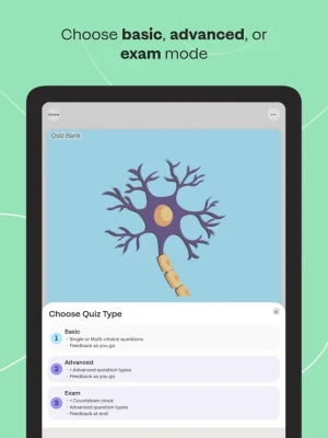 NEW Quiz Bank: Thousands of questions across three modes (basic, advanced, exam).