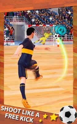Play soccer championships like a striker against the goalkeeper y get the ball in the back of the net. Score goal, Free kick and penalty with spin near the poles and crossbar to get the max points. Aim right to earn the highest score in every match of this soccer game and become the best futsal player in the world.