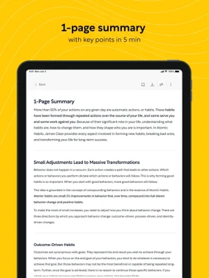 • Quick 1-page summaries to understand the book at a glance