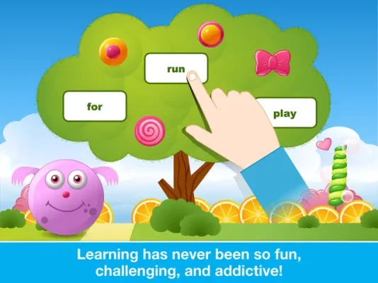 Complete a word recognition challenge! Tap on the words called to ripen the candy fruit. Once all the fruit is ripe for picking, drag the fruit to the hungry little monster to feed it!