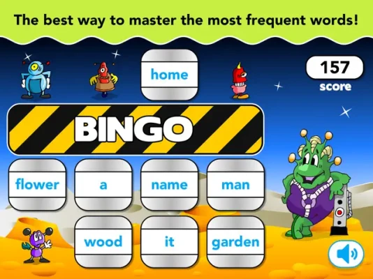Make a Bingo to get a ticket for Aliens back home! Tap on the word corresponding to the one that you heard pronounced. Once you have matched cards from one side of the board to the next... Bingo! Aliens are back home!