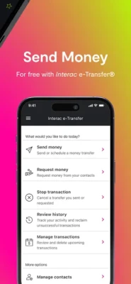 Pay bills, transfer funds, send, request and receive money in Canada for free using Interac e-Transfer®, order foreign cash and send money internationally to over 90 countries with no transfer fees†.