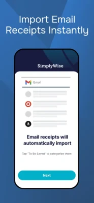 • Automatically import business receipts from your email and online accounts (Gmail, Outlook, Amazon, Walmart, PayPal) by connecting them to SimplyWise.