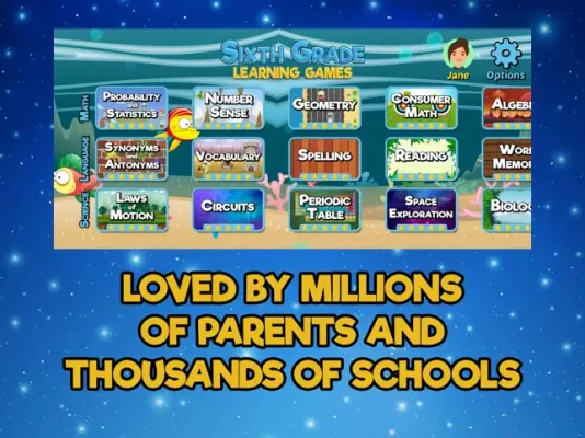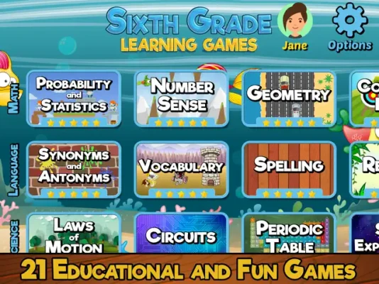 Perfect for 6th grade kids and students who need a fun and entertaining educational game to play. This bundle of games helps your child learn important math, language, algebra, science, and STEM skills used in sixth grade all while having fun! 6th Grade teachers around the world use this app with their students to help reinforce math, language, and science subjects.