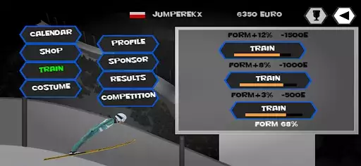 - At the beginning of the career, the jumper jumps weaker, time is needed for his development (the player increases the player's experience after each competition).