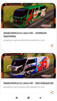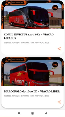 - Skins de Ônibus - Skins de Empresas Reais - Skins leves e livres de vírus. - Download via Google Drive. - Menus de fácil acesso as Skins. - Notificação em Push