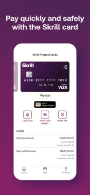 • Get a Skrill VISA® Prepaid Card to withdraw cash from thousands of ATMs around the world or make payments everywhere Visa is accepted;