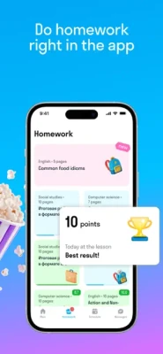 All lessons take place directly in the app. Just install it on your smartphone or tablet — all assignments are already there. During your introductory lesson, the teacher will assess your skill level and create a study plan to help you achieve your goals. You can study in a group (if support and socialization are important to you) or one-on-one with a teacher (if you want to study at your own pace). In the app, you can also complete homework, chat with your teacher, and schedule or reschedule lessons. All you need is a good internet connection and free time.