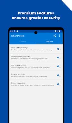 1. Protection against theft: With Smart Protect, you can protect your device against thieves who try to unlock it with the wrong code. The app takes a silent photo and sends the intruder's image by email along with the device's GPS location.