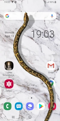 This awesome application will display animation of a snake (Python) on the screen of your phone. Just press "Show Snake" and give app permission to draw over other apps. Virtual snake will start moving and hissing on your screen. Our footless vertebrate friend will be visible almost all the time (it will be displayed in the foreground of all running apps). You can use your favorite social network, browse internet or play a game and you will still see crawling snake and hear its hissing.