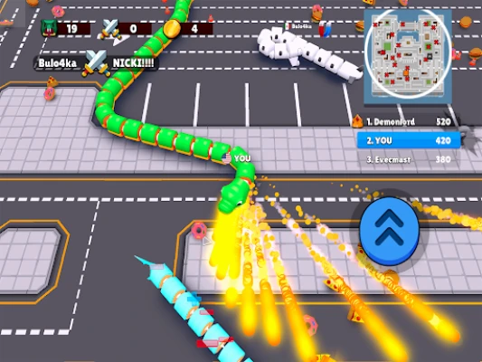 Compete against highly skilled players from around the world in Snake Wars: City Battle, test your mettle, and climb the leaderboards. Show off your snake-handling prowess and establish yourself as the ultimate champion.