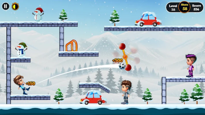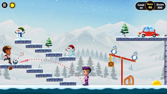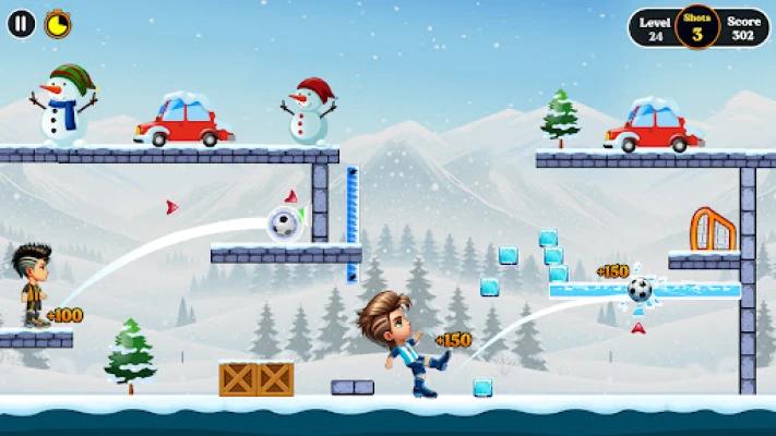 Here's how to play Shooting Boy: a Soccer Hero; touch the screen and drag to aim the ball to the goal. If you hit multiple objects as you kick the ball, you'll get awards and more points! You can select from 3 different modes: Snow County Willis Park and Scott Factory. Enjoy playing these three modes with 60 different fun and challenging levels that will challenge your skills in playing this one of a kind soccer ball game.