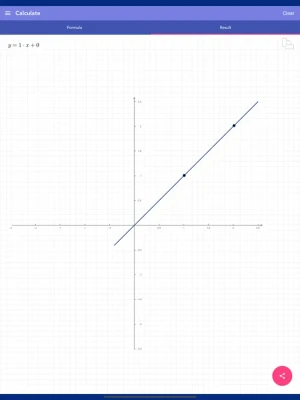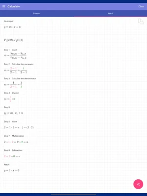 This app solves linear equations step by step and plots the result. All the performed calculations are stored in the history. Just enter m, n or two coordinate points and the equation is solved. The final solution can be shared.