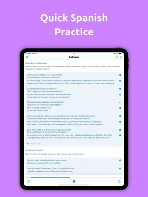 Practice your Spanish speaking and listening with offline Spanish conversations by native speakers. Designed for practicing daily Spanish listening and speaking.