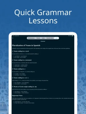 With simultaneous books feature you can read and listen at the same time. This will have huge impact for you to get familiar with Spanish language. You will learn the reading and listening at the same time. This will help you with writing and speaking.