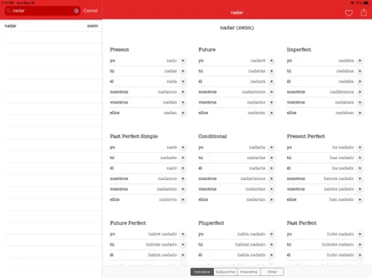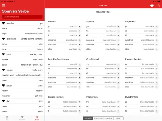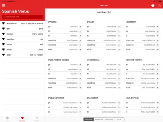 Now with audio!! Not sure how to pronounce a verb? You can now hear how every verb is pronounced. Just tap on the button next to the conjugation. Note: this functionality requires an Internet connection.