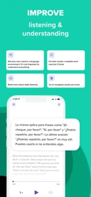 - MEMORY TECHNIQUES — Speakly uses spaced repetition to push newly learned information into your long-term memory in the most efficient way imaginable. This ensures that you remember everything you’ve learned.