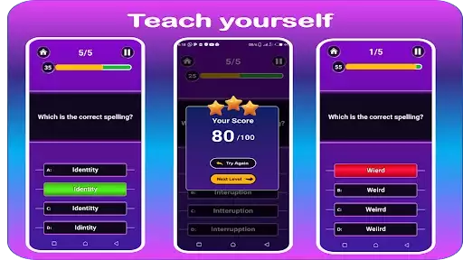 Do you think you can spell well and write well? And how many correct spellings to you know? You can find out with this spelling quiz app. This quiz game for adults will test that. Spelling has never been so much fun to learn as an adult!