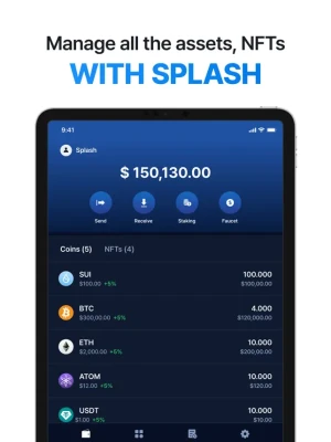 Splash Wallet mobile app is the easiest and safest way to get Sui test coins from a faucet, Manage Sui NFTs, earn yield on crypto with staking or decentralized finance (DeFi), and access decentralized applications (dapps). Sui is more accessible and user-friendly than ever!